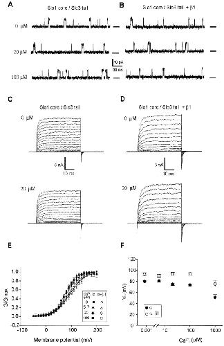 A calcium switch for the functional coupling between alpha (hslo) and beta subunits (Kv,cabeta) of maxi K channels.