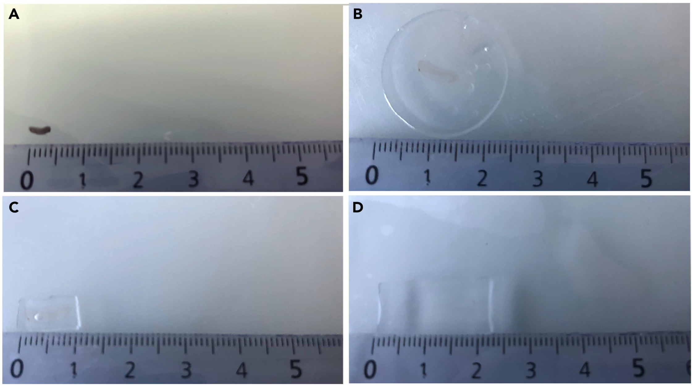 (C) Gel on day 8 after trimming at 1 mm around the embryo. In this example the length of the trimmed rectangle is 12 mm.
