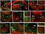 Figure 7. Photomicrographs of double-labeled transverse (a–c, e, f, i–m) and sagittal (d, g, h) sections at representative brain levels of Xenopus from stages 53–56. Topological dorsal and rostral orientations are indicated by rows, with respect to the alar-basal boundary (ABB), indicated by a rough dashed line in sagittal sections. Color codes for the markers are indicated in the upper left corner of each photo. Thin dashed lines represent the approximate boundaries within telencephalic, diencephalic, mesencephalic, and rhombencephalic subdivisions. See the list for abbreviations. Scale bar, all = 100 μm.