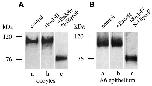 in heart. Brain and intestine presented a predominant lower band (at about 85 kDa, arrowhead). The same pattern of bands was observed with our antibody