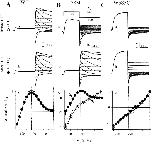 Figure 4. . Effects of MTSES on WT HERG (A), I583C (B) and W585C (C). The format of this figure is the same as that in Fig. 3. (A) WT HERG recorded in 2 mM [K]o, activated by 1-s depolarization pulses to 20 mV, tail currents recorded at −80 mV. (B) I583C recorded in 98 mM [K]o, activated by 1-s depolarization to 20 mV, tail currents recorded at −80 mV. (C) W585C recorded in 98 mM [K]o, activated by 1-s depolarization to 20 mV, tail currents recorded at −120 mV.