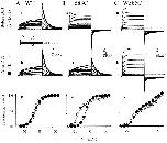 Figure 2. . Effects of cysteine substitution at positions 583 and 585 on the I-V relationship and reversal potential (Erev) of HERG. These experiments are done in 2 mM [K]o and 96 mM [Na]o, using the voltage clamp protocol shown on top of B. Original current traces recorded from WT HERG (A), I583C (B) and W585C (C) before DTT treatment (a), and after DTT treatment (b; 5 mM DTT for 10–15 min, followed by ∼10-min wash) from the same oocytes are shown. Tail current amplitudes are measured, leak-subtracted, and normalized by the maximal outward tail currents measured from the same oocytes. Average I-V relationships are summarized in panels c. Dotted lines denote the Vr range (30 to −60 mV) where the slopes of the I-V relationships are used for the calculation of “rectification factors” (Fig. 6). Arrows in panel c of B point to Erev of I583C before and after DTT treatment.