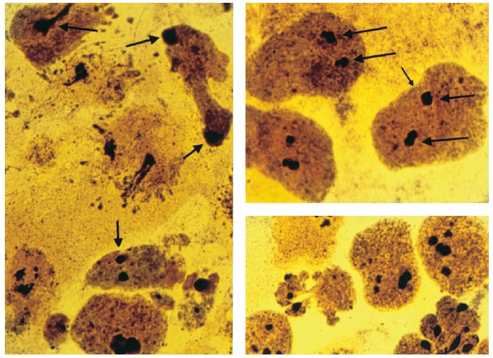 colchicine for 4–6 h (stock A). Two large nucleoli (arrows) with