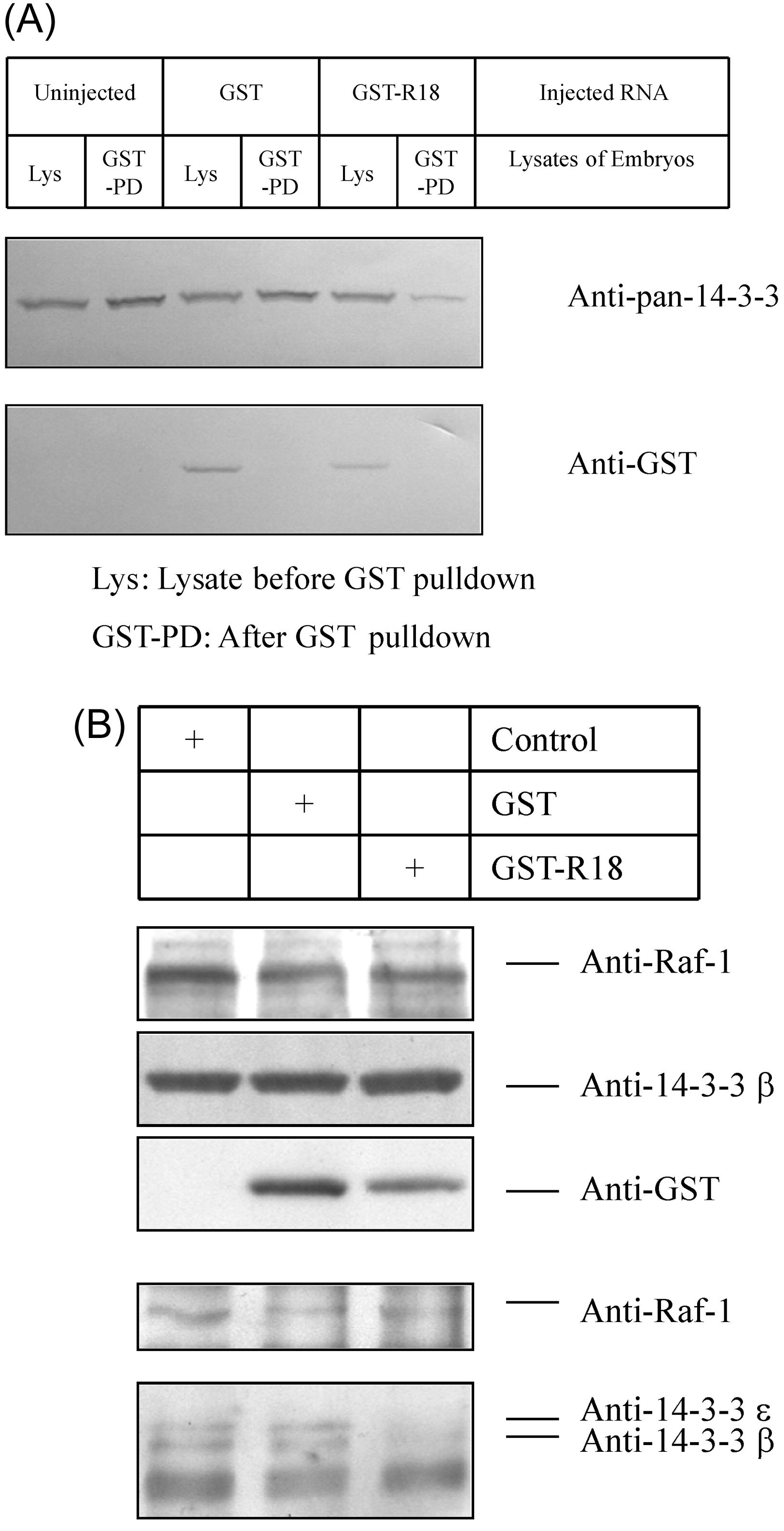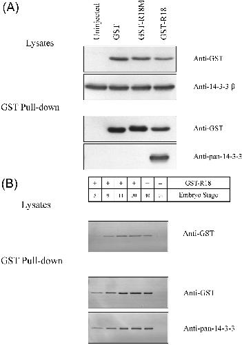 embryos. (A) GST-R18 fusion protein binds to 14-3-3 in embryos. Xenopus