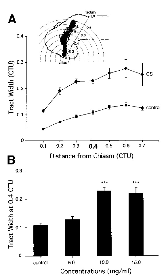 the tectum. (F) Brains exposed to keratan sulfate (10 mg/mL) have normal optic projections that
