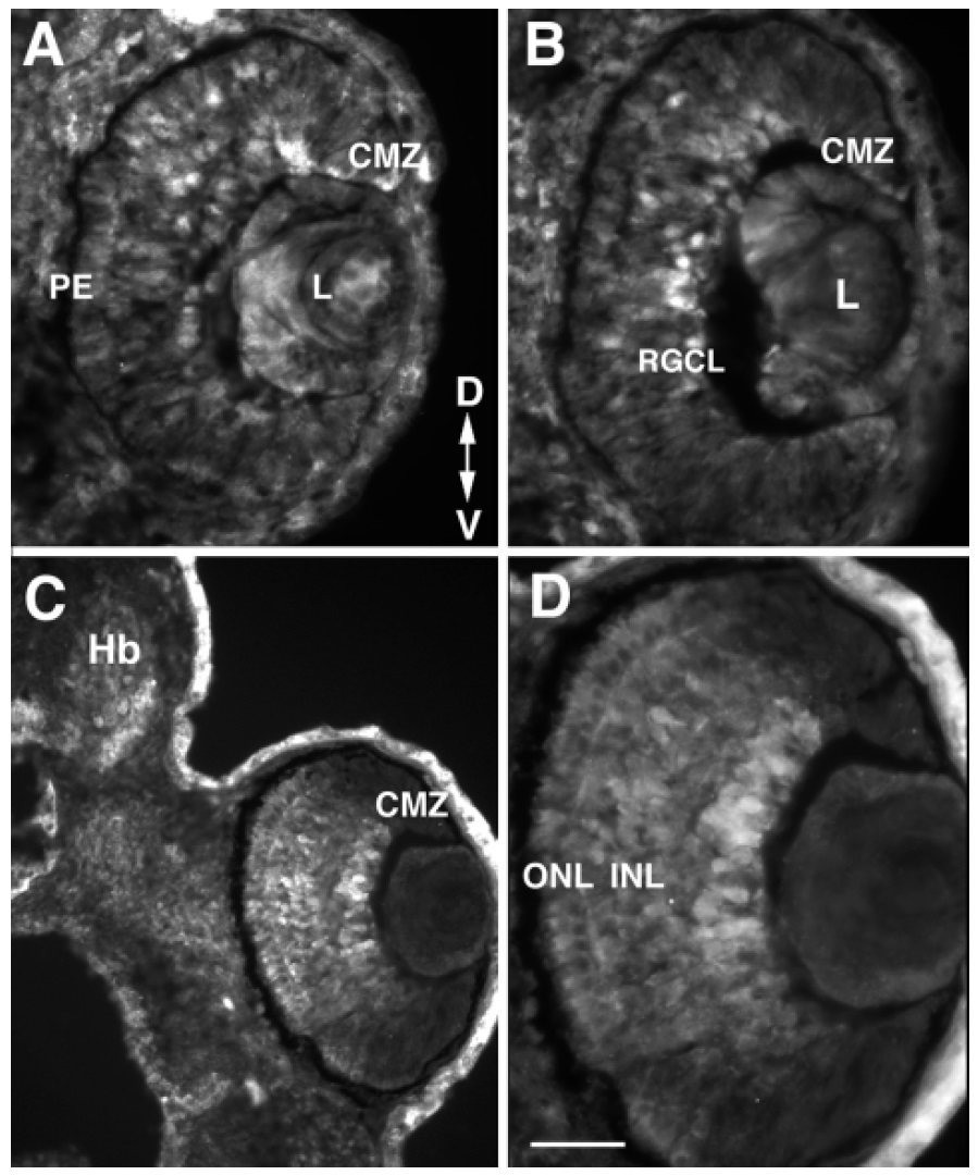 40. CMZ, ciliary marginal zone; D, dorsal; Mb, midbrain; NR, neural