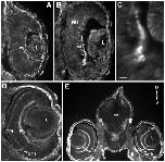the basal lamina surrounding the eye primordium (arrowhead). B: At