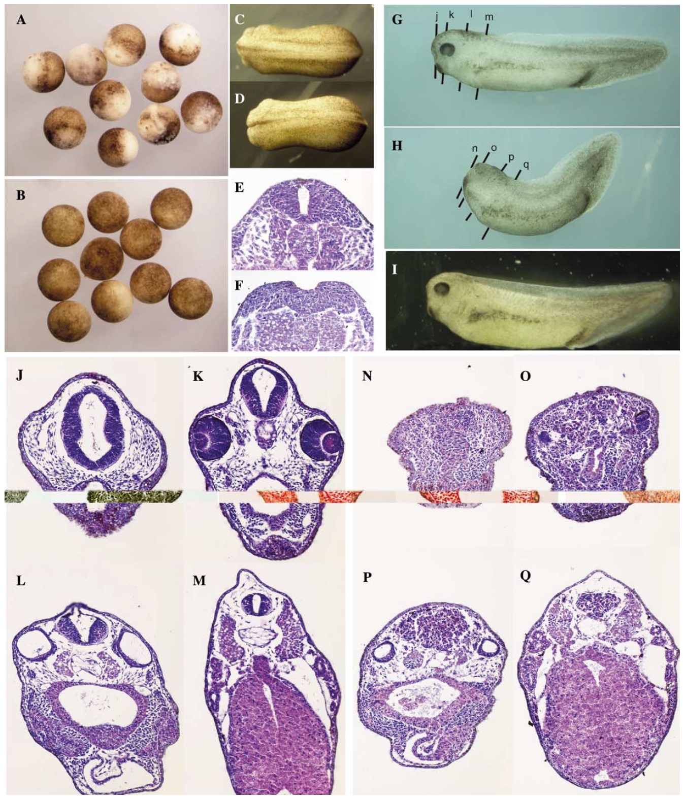 d5n-dullard mRNA. (JâQ) Transverse sections ofthe control (JâM) or dullard Mo-injected (NâQ) embryo at stage 35 at the sites indicated with small