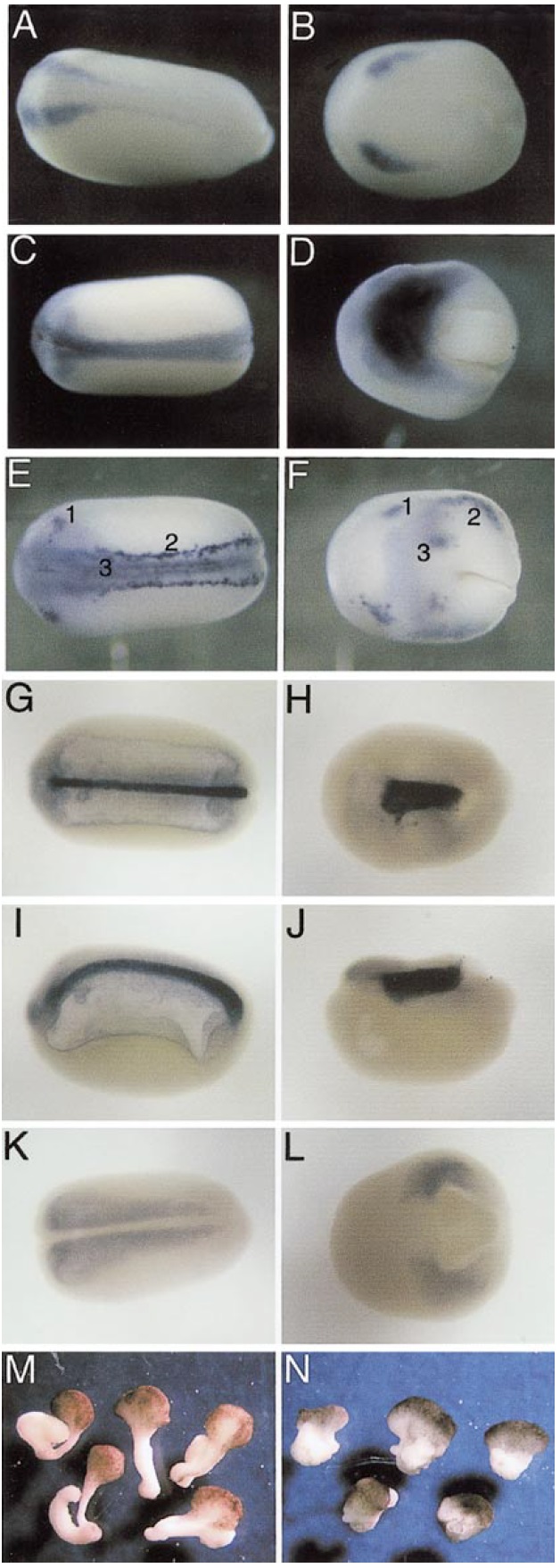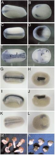 tube thereafter in the tailbud stages (F, stage 20; G, stage 25, dorsal