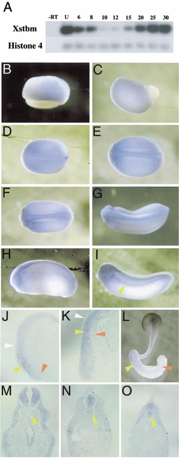 neurula (stage 15â20). (BâO) Localization of Xstbm transcripts by