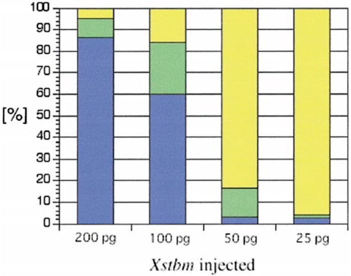 FIG. 4. Effects on phenotype by increasing doses of Xstbm expression.