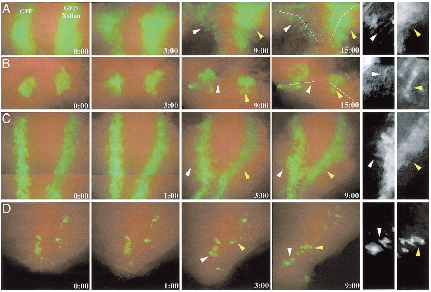 of the last frame of the GFP-injected (left) and Xstbm GFP-injected cells (right). The explants were prepared as described in Fig. 6B for