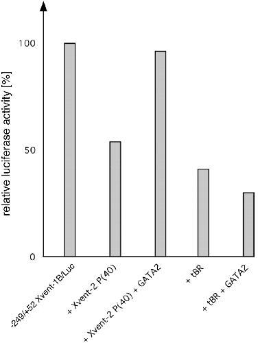 11. B, pGL3 constructs of the wild type (WT) or an Xvent-1B promoter mutated in the GATA-2 binding site (Gm) were coinjected with 50 pg of