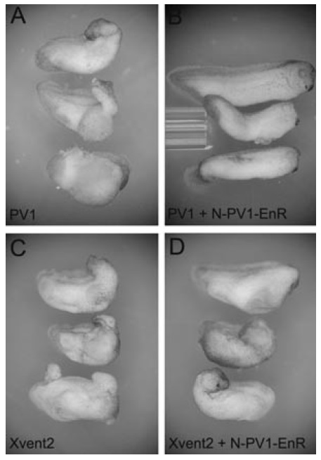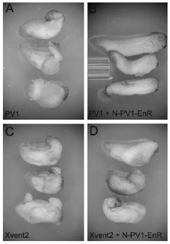 Xvent-2 (0.2 ng) and N-PV1-EnR (0.5 ng). Embryos injected with