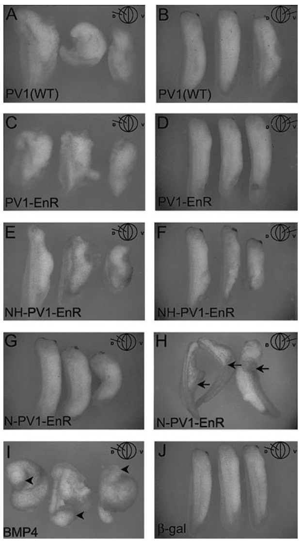 N-PV1-EnR did not (G). PV1-EnR, NH-PV1-EnR still has ventralizing