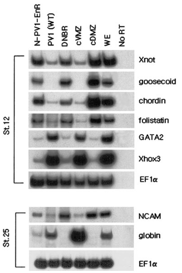 FIG. 4. Antimorphic PV.1 induces organizer genes and suppresses