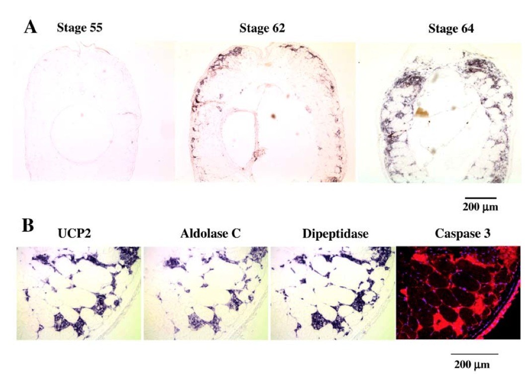 Genes referenced: aldoc atp5f1a casp3.2 col9a1 dan4l dpepe eno3 hyal2 mcm7 mmut notch1 trhd ucp1 ucp2