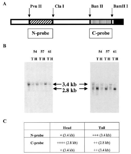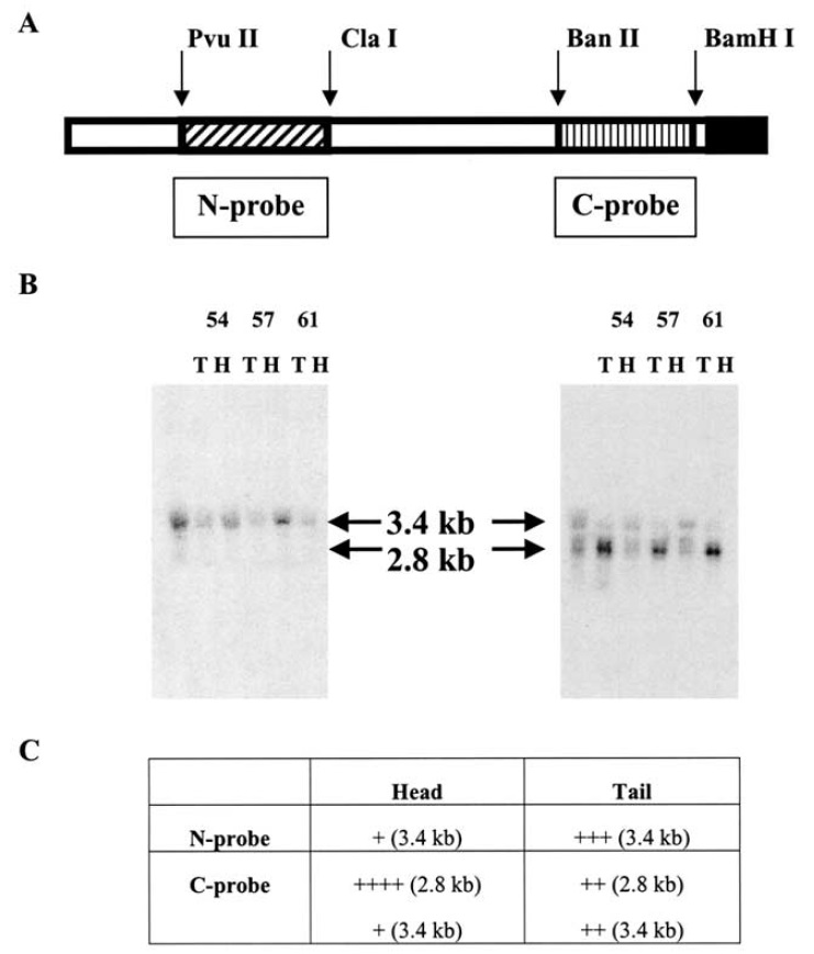levels in tail and head of XTP mRNA as deducted from the Northern blot.