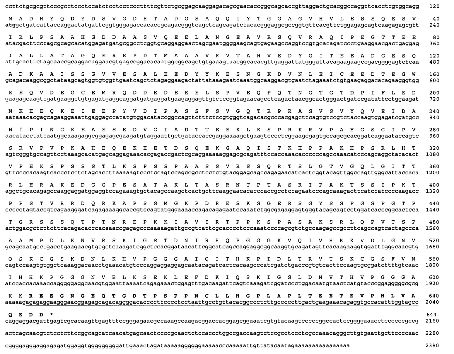 Fig. 2. Sequence of XTP-2. Nucleotide and corresponding amino acid sequence of XTP-2 (GenBank accession number AY032848). The nucleotides are