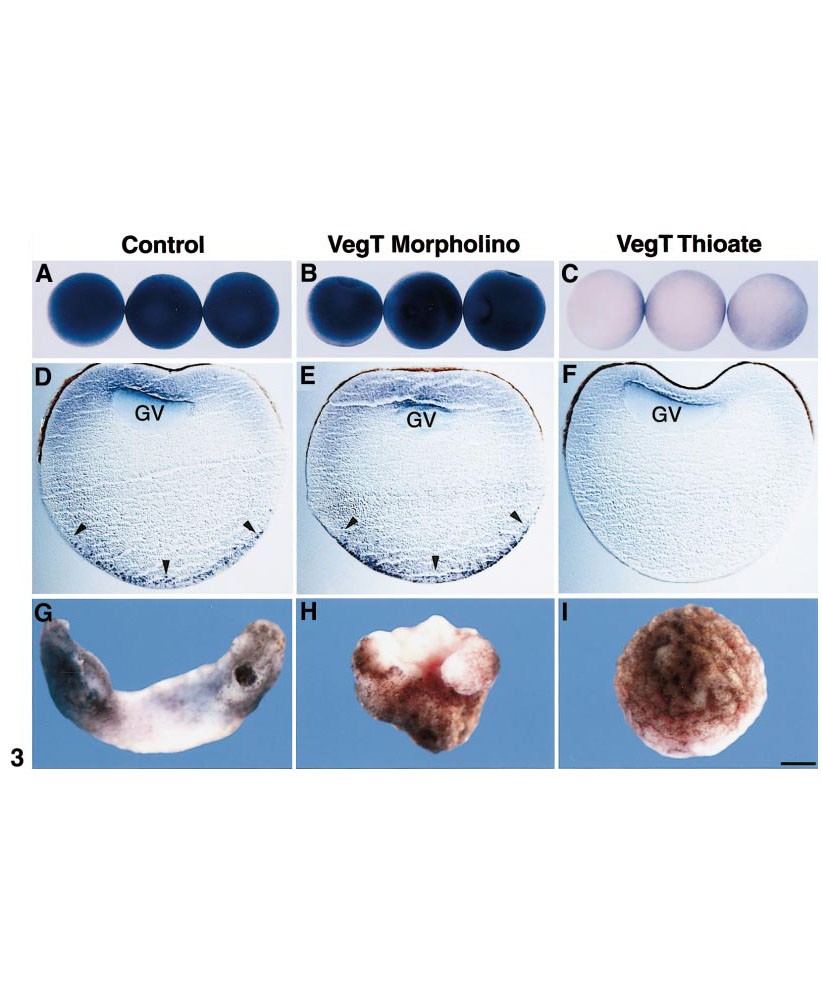 stage displayed a complete loss of axis formation with VegT depletion by the morpholino or chimeric antisense oligos. Vegetal (Aâ C), Sagittal