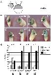 FIG. 5. otx2-En interferes with cement gland formation. (A) Embryos were injected at the two-cell stage with otx2-En RNA without or with otx2 RNA, targeting the future anterior/ventral ectoderm by injecting superficially in the animal pole. lacZ RNA was included as a lineage tracer. Embryos were allowed to develop until hatching (stage 30). (B) Embryos were injected with 100 pg otx2-En (a), 100 pg otx2-En plus 100 pg otx2 (b), 100 pg otx2-En plus 200 pg otx2 (c), or 100 pg globin (d) RNA mixed with 120 pg lacZ RNA. Injected embryos were stained for ï°-galactosidase activity (blue) and scored for cement gland formation by morphology when lineage tracer was present anteriorly (white arrowheads). (C) Embryos from (B) were scored for absent or minimal cement gland formation (defined as no or very few pigmented cells; G absent,gray bars), reduced cement gland formation (a small, round patch of pigmented cells; G reduc.,hatched bars), or normal cement glands (oblong shape, scored relative to size of average control cement gland; ormal,black bars). The data represent four separate rescue experiments. Rescued cement glands often included some ectopic cement gland formation due to the presence of otx2 RNA.