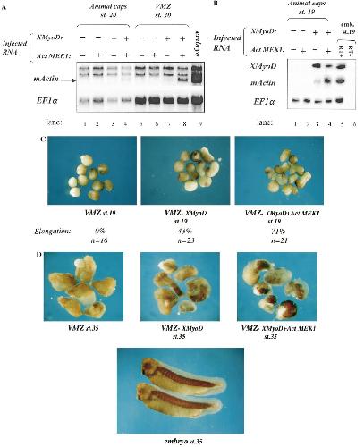 2 ng of in vitro transcribed XMyoD RNA or/and with 2.5 ng of in vitro transcribed constitutively active form of MEK1 (Act MEK1) RNA.