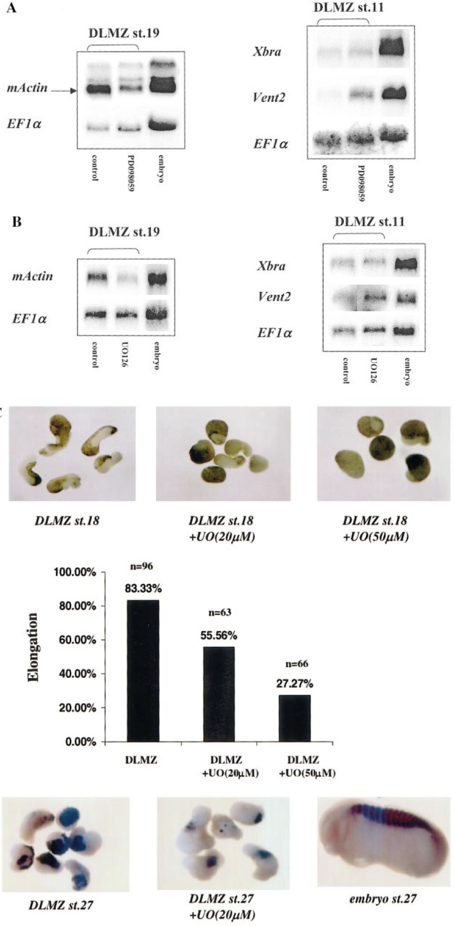 removed at stage 101–10.25 and cultured without or in the presence of 20 or 50 mMUO126 until sibling embryos reached stage 18. Explants