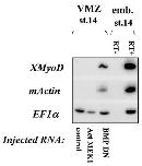 with Xenopus cDNA probes for mActin and EF1a. EF1a served as a positive control for quantitating RNA levels in the different samples.