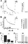 Figure 8. Pre-activated ISOCE does not inactivate in response to MPF activation. Oocytes were incubated in Ca2+-free medium (L-15 with Ca2+, buffered at 50 μM), containing thapsigargin (1 μM) to deplete intracellular Ca2+ store and activate ISOCE. Cells were voltage clamped in a Ca2+-free solution (70Mg; see Materials and methods) and then switched to a solution containing 30 mM Ca2+ (30Ca; see Materials and methods) to induce Ca2+ influx through SOCE channels. (A) ISOCE and MPF levels from a control thapsigargin–treated oocyte. (B) Oocytes were treated with progesterone (5 μg/ml) for 1 h and then thapsigargin (1 μM) was added, and the cells were incubated until GVBD occurred. ISOCE was measured ∼15 min after GVBD occurrence. ISOCE was still present in this cell, although MPF was activated at high levels, indicating that MPF is unable to block SOCE that has been preactivated before MPF induction. ISOCE (C) and MPF (D) levels in oocytes (n = 5) and cells treated with progesterone 10–15 min (n = 8) and 15–30 min after GVBD (n = 7). ISOCE levels gradually declined after GVBD and MPF levels remained relatively stable.