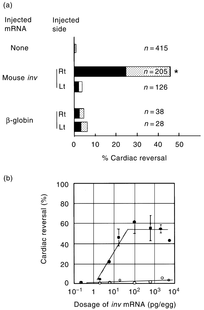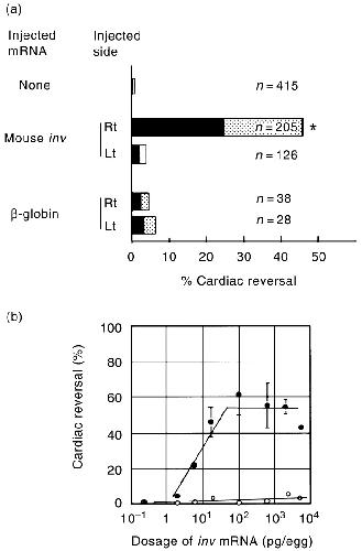 Fig. 5. (a) Reversal of visceral asymmetry by injection of inv