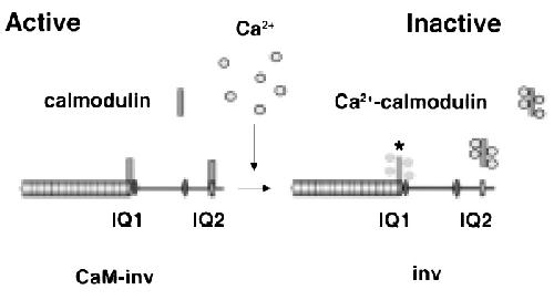 calmodulin is unable to bind to inv and inv becomes inactivated