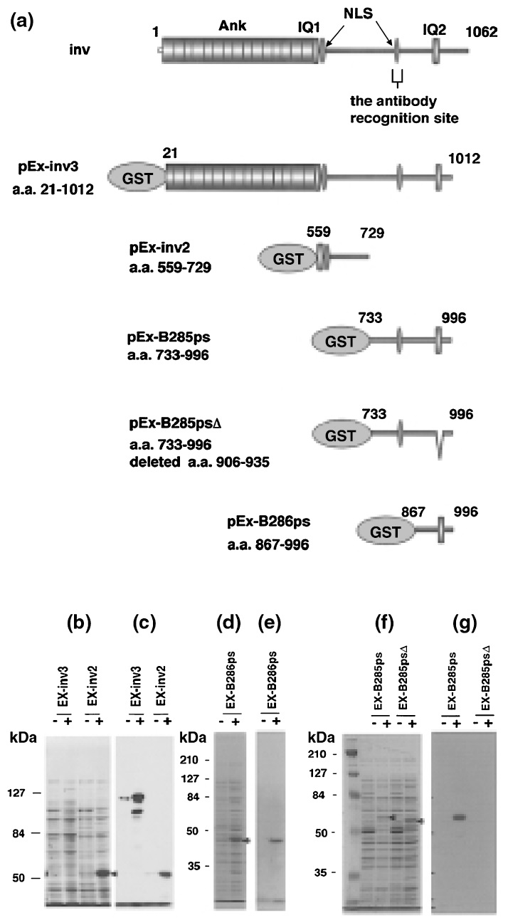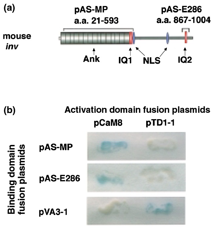 Fig. 1. Yeast two-hybrid assay. (a) Mouse inv regions fused to