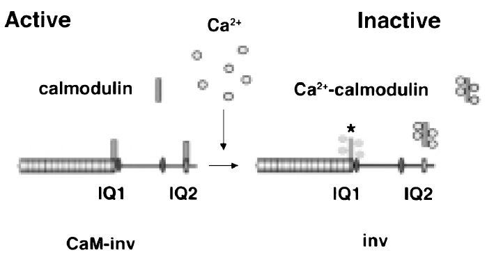 absence of Ca2+, the inv protein binds to calmodulin at the IQ2