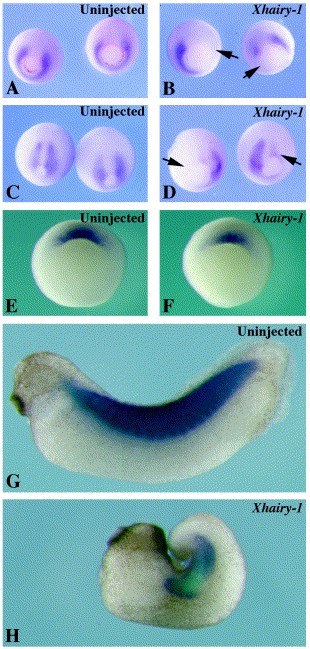 Repression of XMyoD expression and myogenesis by Xhairy-1 in Xenopus early embryo.