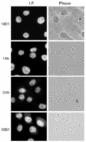 using either 10D1 or the anti-hnRNP A1 4B10 monoclonal antibody, as
