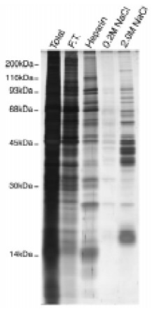 2.0 M NaCl, proteins eluted with the