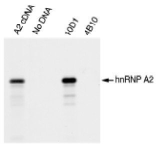 Fig. 7. Binding of 10D1 to X. laevis hnRNP A2 transcribed and translated