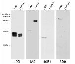 right panels point to the position of the 1A5-reactive proteins. Positions of molecular mass standards are indicated on the left.