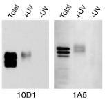immunoblotting with 1A5 (right panel). Arrowheads in the left panel point to proteins reactive with the 10D1 monoclonal antibody. Arrows in the left and