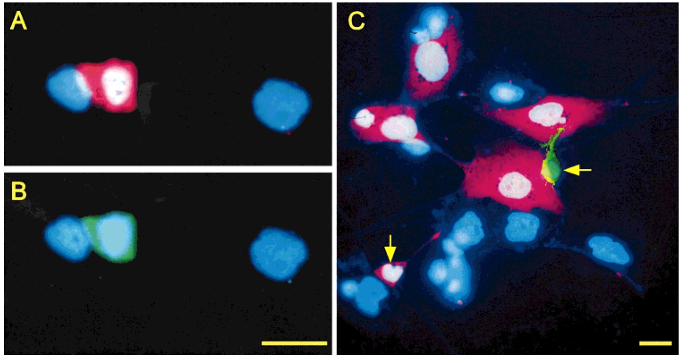 Figure 1 Photomicrographs of dissociated, cultured retinal cells. The color scheme is as follows: