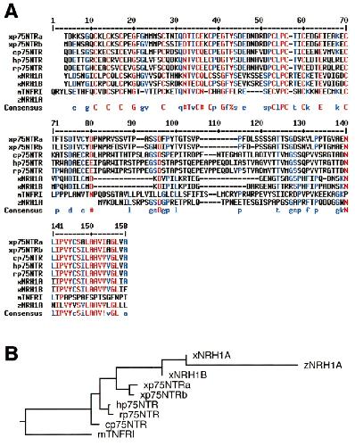 receptor homologues, xNRH1A (a.a. 108–233), xNRH1B (a.a. 105–234), and zNRH1A (a.a. 1–72).