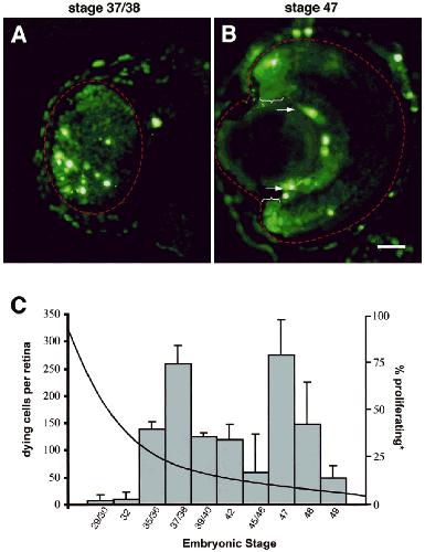 through central retina at stage 47. At this stage, most of the dying cells are observed in the retinal