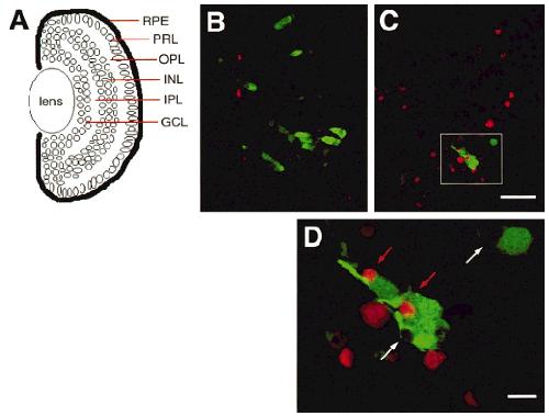 strand control in same plane as (A). (C) Sagittal section through stage 45/46 retina showing