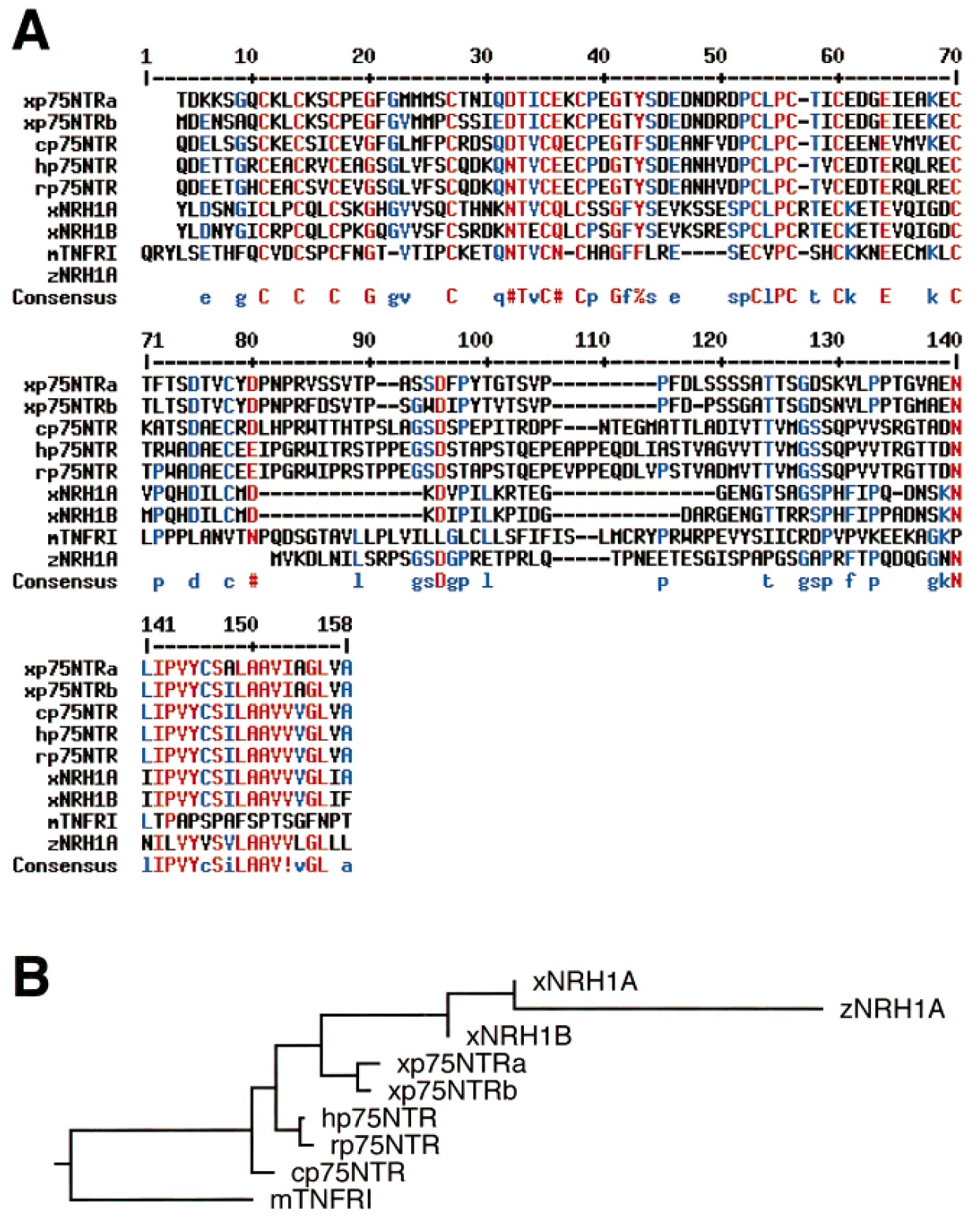 (a.a. 116–269) p75NTR; mouse TNFR (a.a. 133–272); and the Xenopus and zebrafish neurotrophin
