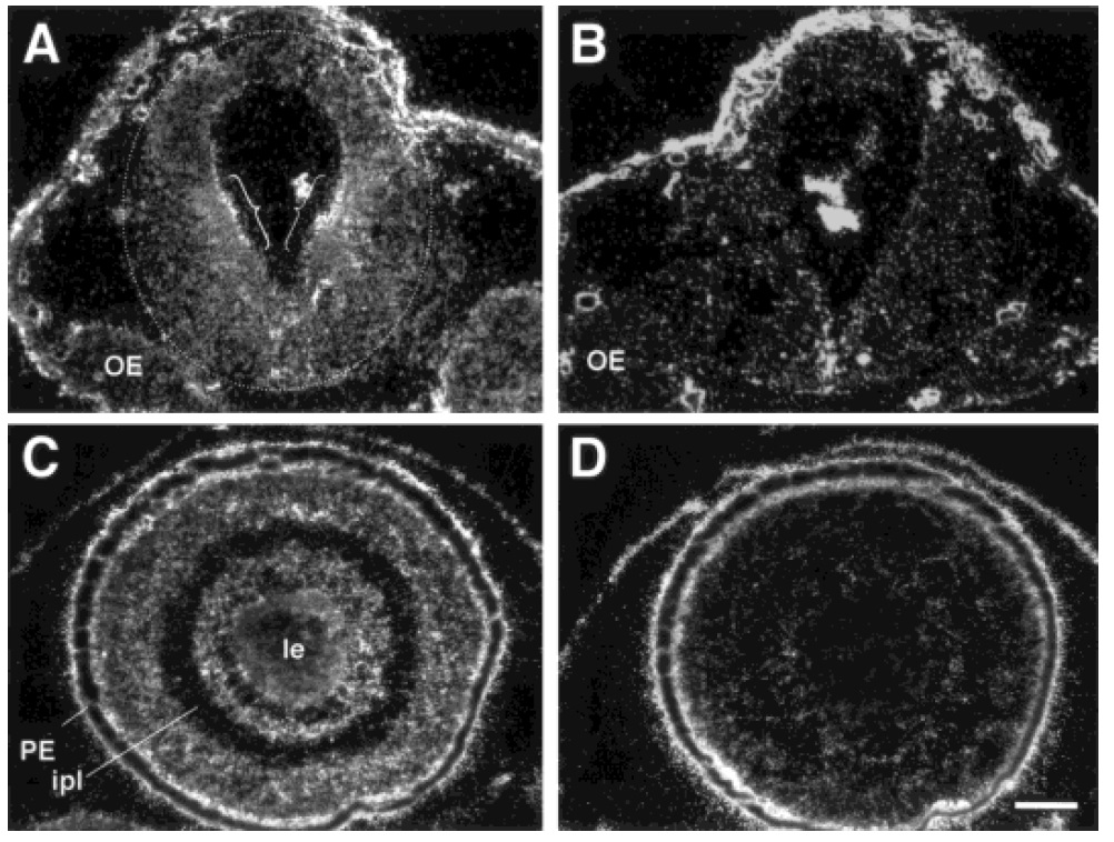 pigment epithelium. (D) Sense strand control. Anterior is to the left in (C) and (D). The epidermis