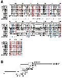 domain. Key to consensus sequence: !: I or V; $: L or M; %: F or Y; #: N, D, Q, or E. (B)