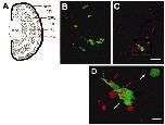 Figure 10 In vivo lipofections and cell death. Transverse sections through ventral stage 37/38