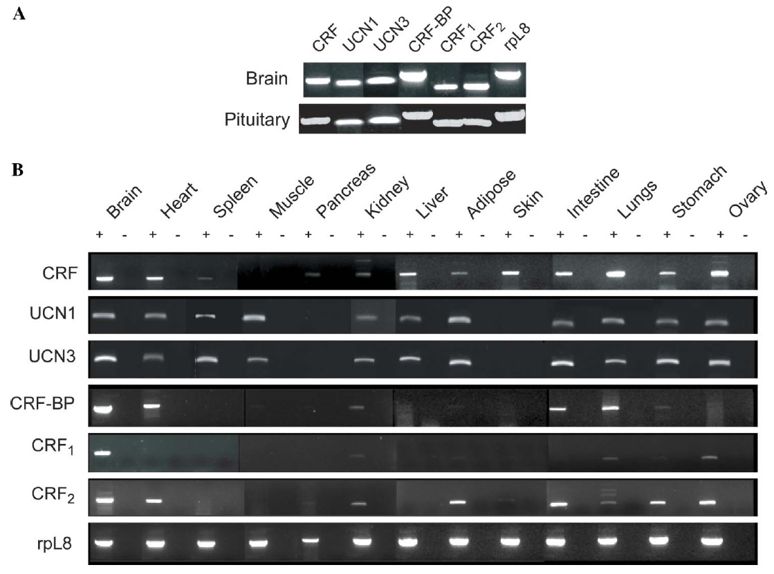 protein (CRF-BP), CRF receptor 1 (CRF1) and CRF receptor 2 (CRF2). Ribosomal L8 (rpL8) was used as a housekeeping gene to control for RNA quality