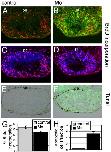 these laminae was detected in the injected sides of morphants (arrows in panels B, C, F). Integrin staining, which showed a radial-like pattern in the control sides (A,