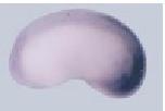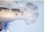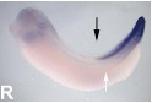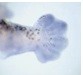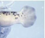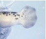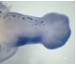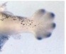 hoxa13 (homeobox A13 ) gene expression in Xenopus laevis embryo, assayed via in situ hybridization, NF stage 51/52, hind limb buds in normal orientation- anterior is down, posterior is up and dorsal is facing viewer.